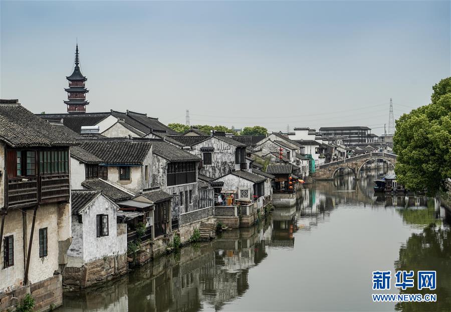 千灯镇景色(4月26日摄)。 江苏省昆山市千灯镇是有2500多年历史的古镇,也是中国古老戏曲剧种昆曲的发源地。千灯镇人学昆曲、唱昆曲,蔚然成风。 新华社记者 杨磊 摄