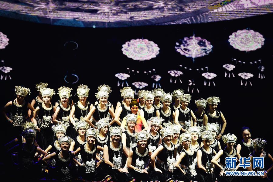 演员在广西南宁举行的晚会现场表演具有民族风情的舞蹈(4月26日摄)。 当日,第29届中国戏剧梅花奖、第23届曹禺剧本奖颁奖晚会在广西南宁举行。 新华社记者 曹祎铭 摄