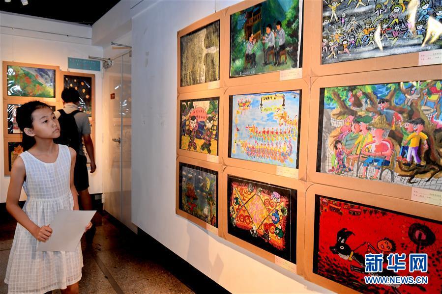 4月27日,台湾小朋友在第十届海峡两岸少儿美术大展上参观。 当日,第十届海峡两岸少儿美术大展在台北开幕。本次展览以“理想世界”为主题,共展出少儿作品近300幅。 新华社记者 张国俊 摄