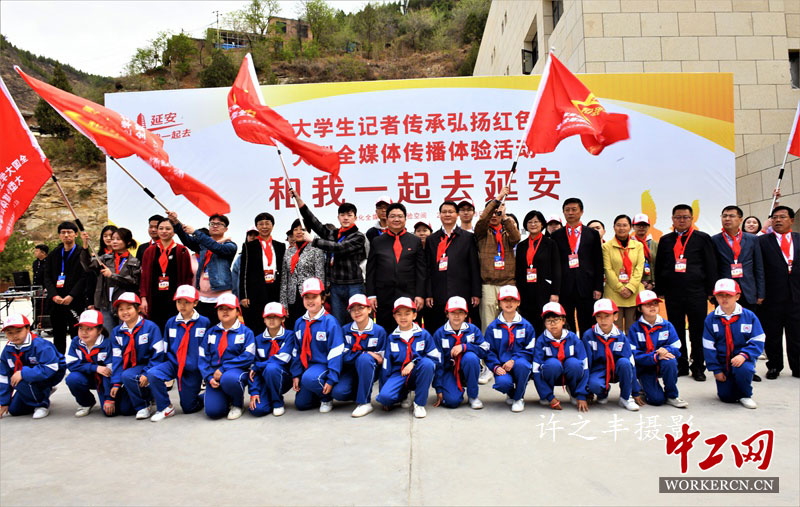 2019年4月28日在延安举行“红色文化全媒体科技体验空间”的启动仪式。由中国公共关系协会、中国青年报社、人民出版社、中共延安市委宣传部合作共建“红色文化全媒体传播工程”。运用先进数字影像技术、顶尖主流媒体传播平台、国际国内优秀传播团队,多角度、多层次、立体化打造以延安为代表的红色文化中国名片,讲好中国故事,传播中国好声音。全国大学生传承弘扬红色文化大型全媒体传播体验活动——“和我一起去延安”也同时启动。来自全国20所高校的20名优秀大学生记者到延安实地采访学习,用青年的视角,记录新时代延安的发展和变化。图为启航仪式现场。工人日报-中工网许之丰摄影报道