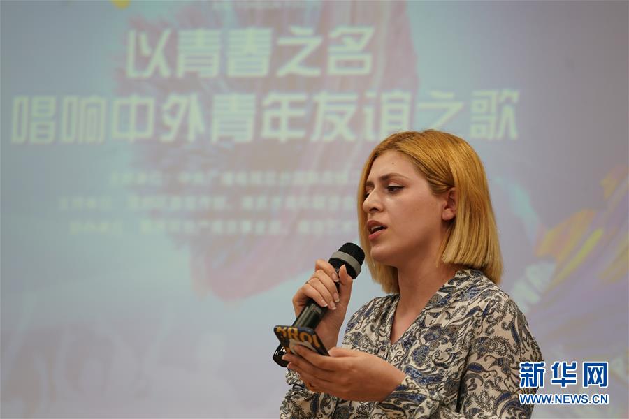 4月28日,来自塔吉克斯坦的留学生岳媛在演唱歌曲。 当日,江苏南京建邺区举行“以青春之名,唱响中外青年友谊之歌”活动。30余名南京青年代表与来自南京艺术学院的外国留学生代表开展文化交流活动,增进了解,加深友谊。 新华社记者 季春鹏 摄
