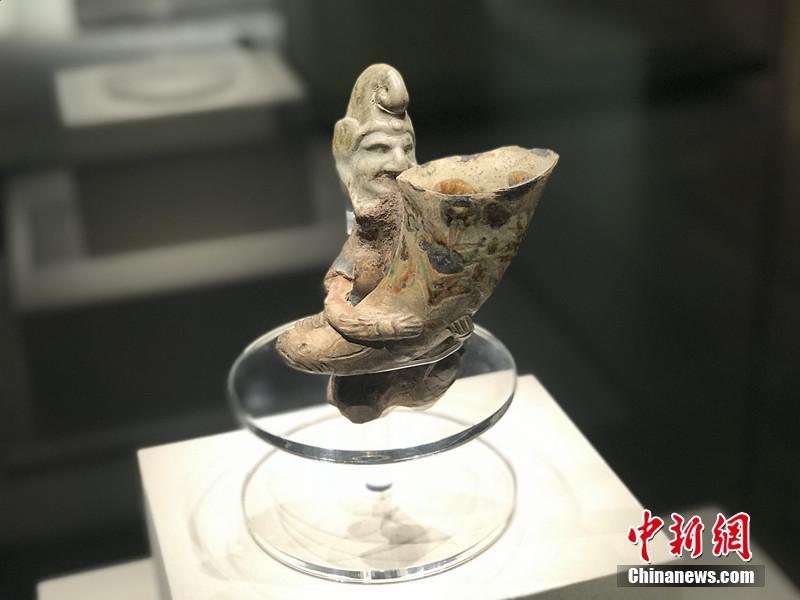 唐代胡人抱角杯。岳依桐 摄