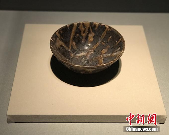 宋代黑釉玳瑁纹瓷茶盏。岳依桐 摄