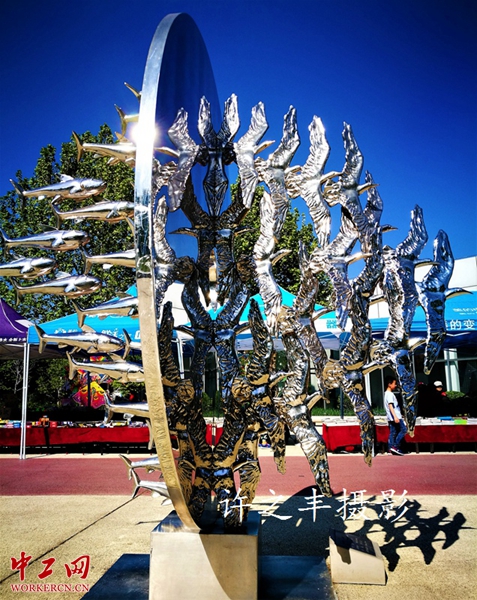 位于北京西长安街的雕塑公园,在这里人们可以享受到新形式的优美园林风格。园中180多种浮雕,壁画布局巧妙,到处绿茵浓郁,花香锦簇,更能感受到雕塑带来的艺术魅力。图为2019年5月1日的北京国际雕塑公园。工人日报-中工网许之丰摄影报道