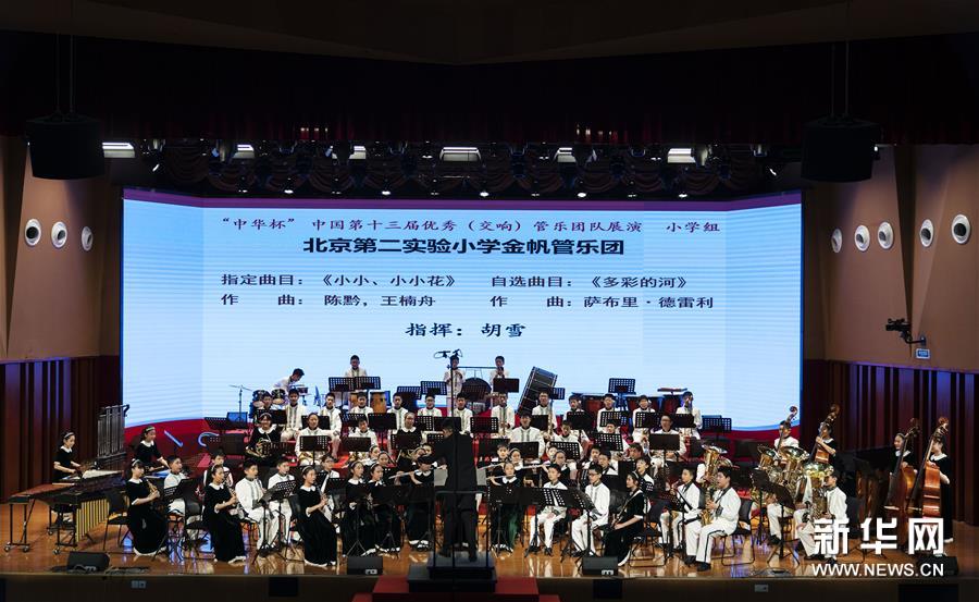 5月3日,北京第二实验小学金帆管乐团登台表演。 新华社记者 丁汀 摄