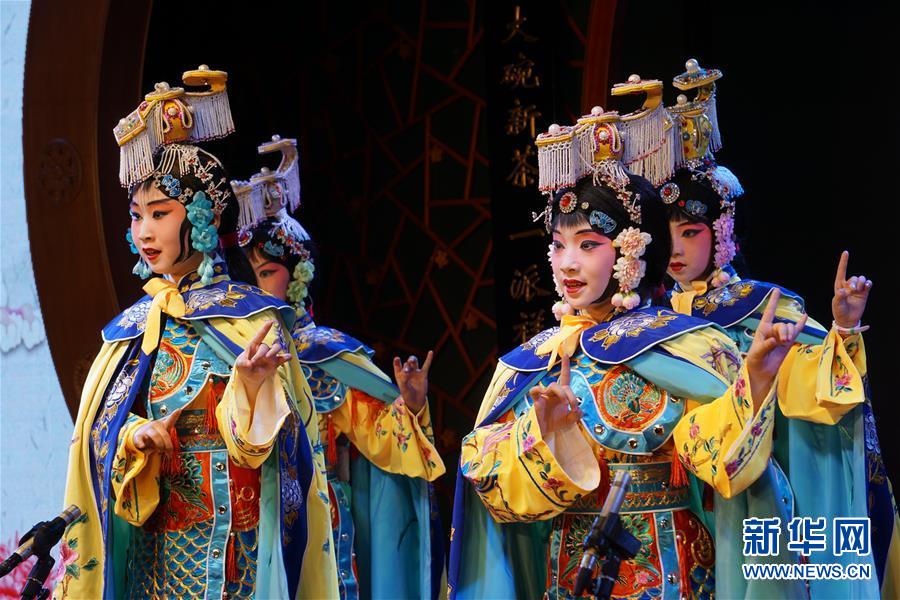 当日,北京市东城区灯市口小学在北京老舍茶馆举办京剧专场演出,99名小学生登台亮相。灯市口小学2013年成立京剧社,目前已在各校区、各年级全面普及京剧课程。新华社记者 赵琬微 摄