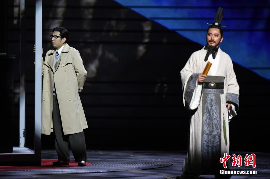 已故音乐家施光南创作了歌曲《在希望的田野上》、《打起手鼓唱起歌》、《祝酒歌》及歌剧《屈原》等作品。图为剧中演绎施光南(左)创作歌剧《屈原》的情形。