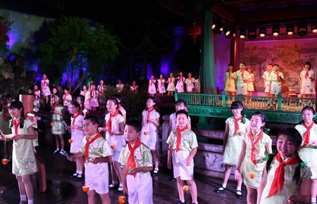 图为剧中演绎施光南(前右)与妻子相识相爱的情形。