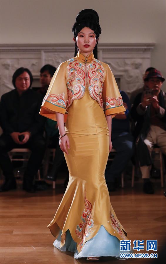 5月8日,一名模特在英国伦敦走秀。 由浙江省文化和旅游厅举办的浙江传统工艺创新展8日在伦敦开幕。为期4天的展览是第五届伦敦手工艺周的重要活动之一。 新华社记者 韩岩 摄