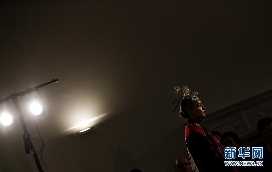 5月8日,一名模特在英国伦敦走秀。 由浙江省文化和旅游厅举办的浙江传统工艺创新展8日在伦敦开幕。为期4天的展览是第五届伦敦手工艺周的重要活动之一。 新华社记者 韩岩 摄