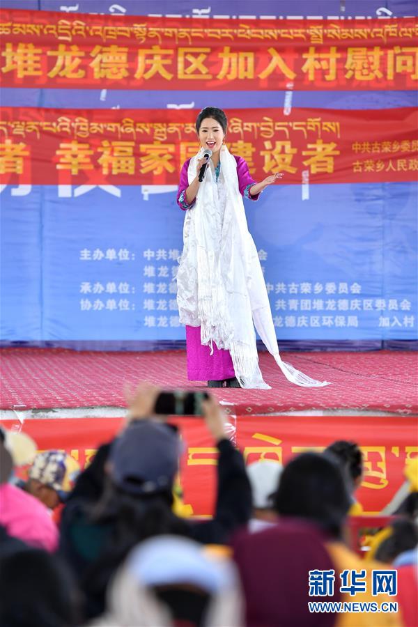 5月9日,拉萨市歌舞团的歌唱演员在拉萨市堆龙德庆区加入村为村民演出。