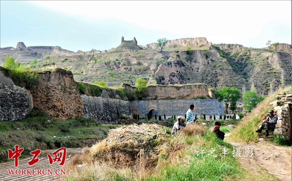 老营堡明长城山西重要关堡。古有“铜偏关,铁宁武,生铁铸的老营堡。”的说法,这里是三关长城中一个最为重要的城堡。长城外便是内蒙古清水河县,从战略位置来看,老营堡北控平鲁,西衔偏关,东接宁武,军事地位十分重要。是全国在县城之外建设的最大古堡,堪称中华长城第一堡。图为2019年5月9日的老营堡明长城。工人日报-中工网许之丰摄影报道