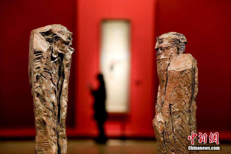 5月10日,由中华人民共和国文化和旅游部主办,中国美术馆承办,中国对外文化集团有限公司协办的“亚洲文明联展(艺术展):大道融通——亚洲艺术作品展”在中国美术馆开幕。展览展出了41个亚洲国家(包含俄罗斯)的120位艺术家创作的130件作品。根据作品的表现内容,分为东方写意、美丽中国、美人之美三个部分,通过水墨画、油画、版画、雕塑等丰富的视觉形式与艺术语言,向亚洲各国以及世界人民展示中国文化的精神气象,展示亚洲各国文化的独特面貌,以及亚洲各国之间共生共融的文化渊源关系。图为吴为山作品《问道——孔子问道老子》。中新社记者 杜洋 摄