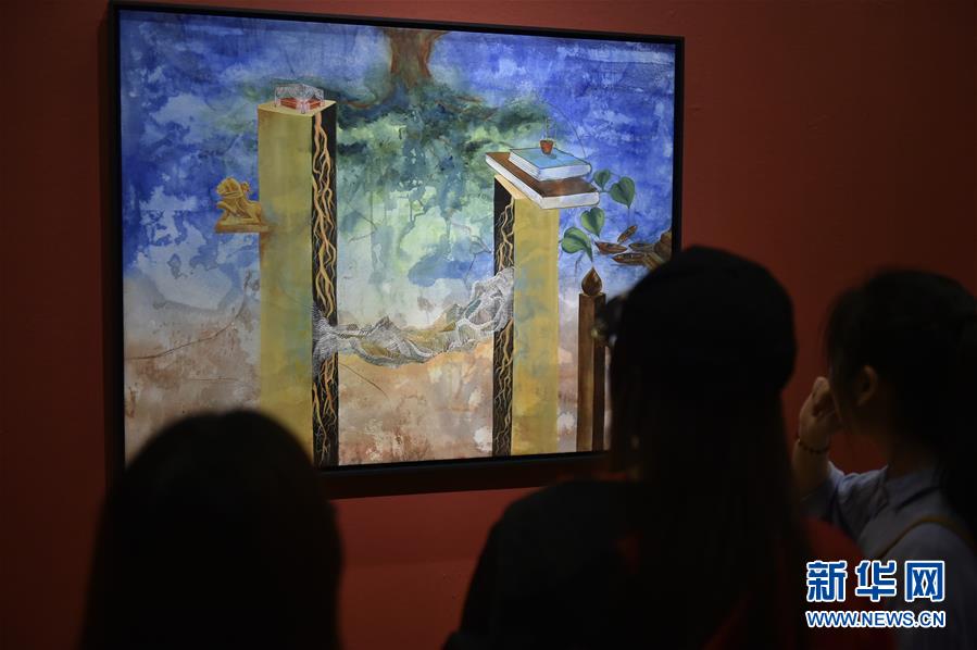 5月10日,观众在中国美术馆参观来自印度的绘画作品。当日,由中国文化和旅游部主办的“亚洲文明联展(艺术展):大道融通——亚洲艺术作品展”在中国美术馆开幕。展览展出了来自巴基斯坦、俄罗斯、韩国、马来西亚、日本、新加坡、印度、中国等41个国家的120位艺术家创作的130件作品。新华社记者 鲁鹏 摄