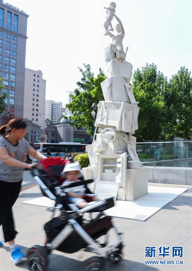 5月10日,行人从“假如母爱有形状”雕塑前走过。