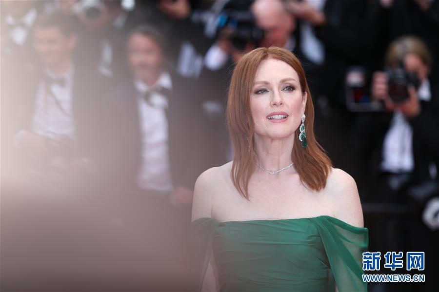 5月14日,在法国南部城市戛纳,美国演员朱丽安·摩尔亮相开幕式红毯。 5月14日,第72届戛纳电影节在戛纳开幕。本届电影节将持续至5月25日。 新华社记者 张铖 摄