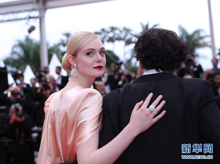 5月14日,在法国戛纳,主竞赛单元评委、美国演员埃勒·范宁(左)亮相第72届戛纳电影节开幕式红毯。 5月14日,第72届戛纳电影节在戛纳开幕。本届电影节将持续至5月25日。 新华社记者 高静 摄
