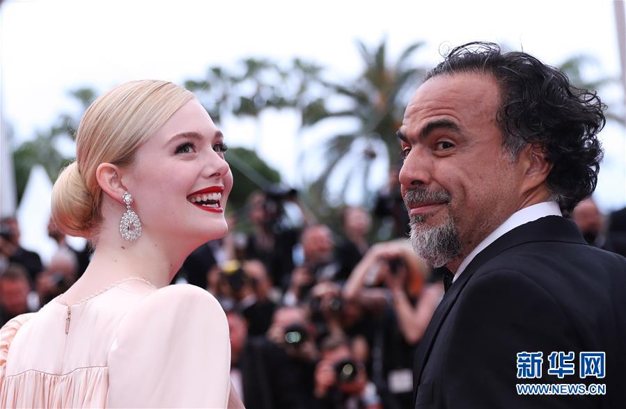 5月14日,在法国戛纳,主竞赛单元评委、美国演员埃勒·范宁(左)与评委会主席、墨西哥著名导演亚历杭德罗·伊尼亚里图亮相第72届戛纳电影节开幕式红毯。 5月14日,第72届戛纳电影节在戛纳开幕。本届电影节将持续至5月25日。 新华社记者 高静 摄