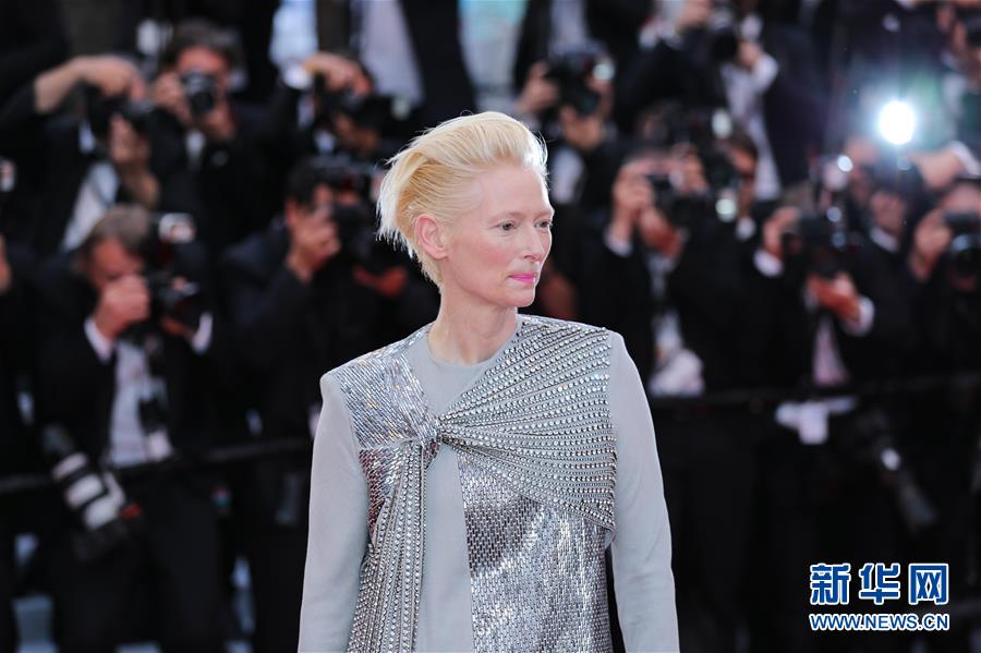 5月14日,在法国南部城市戛纳,英国演员蒂尔达·斯温顿亮相开幕式红毯。 5月14日,第72届戛纳电影节在戛纳开幕。本届电影节将持续至5月25日。 新华社记者 张铖 摄