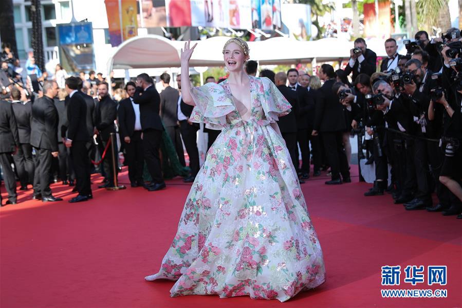 5月15日,在法国戛纳,主竞赛单元评委、美国演员埃勒·范宁亮相戛纳电影节主竞赛单元影片《悲惨世界》首映红毯。 第72届戛纳电影节5月14日至25日在法国南部海滨城市戛纳举行。 新华社记者 张铖 摄