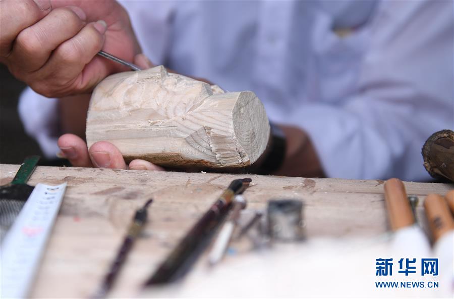 5月15日,郑运德在家里雕刻木偶头。 柘荣布袋戏的非遗代表性传承人郑运德17岁开始跟哥哥学习布袋戏,已为群众表演了50多年。 一张普通的桌子用帷布围住便成为“戏台”,郑运德既当导演又当演员,表演时他在戏台里面手、脚、口、身并用,独自吹拉弹唱,用双手的五指操纵木偶,一个人演绎传统戏曲中多种艺术形象。 柘荣布袋戏又称大拇指戏,是一种历史悠久的福建传统微剧种之一,2008年被列入福建省首批非物质文化遗产保护名录。郑运德说,柘荣布袋戏是柘荣的文化瑰宝,如今坚守着这门老艺术的表演者寥寥无几,希望能有更多的年轻人来学习传承。 新华社记者林善传摄