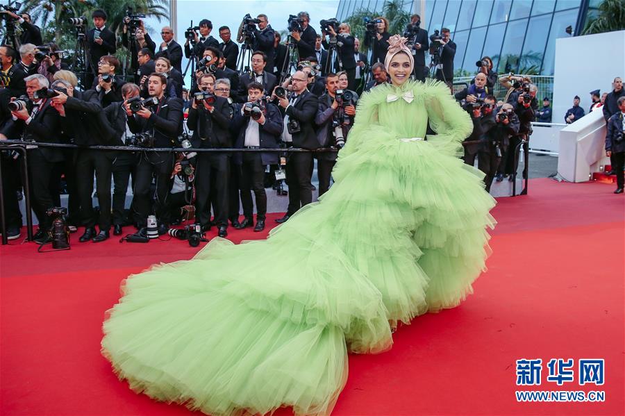 5月17日,在法国戛纳,印度演员迪皮卡·帕度柯妮亮相戛纳电影节主竞赛单元影片《痛苦与荣耀》首映红毯。 第72届戛纳电影节5月14日至25日在法国南部海滨城市戛纳举行。 新华社记者 张铖 摄