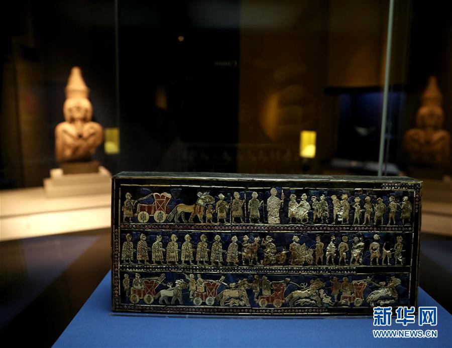 这是5月17日在香港文化博物馆内拍摄的展品伊拉克乌尔军旗。 新华社记者 李钢 摄