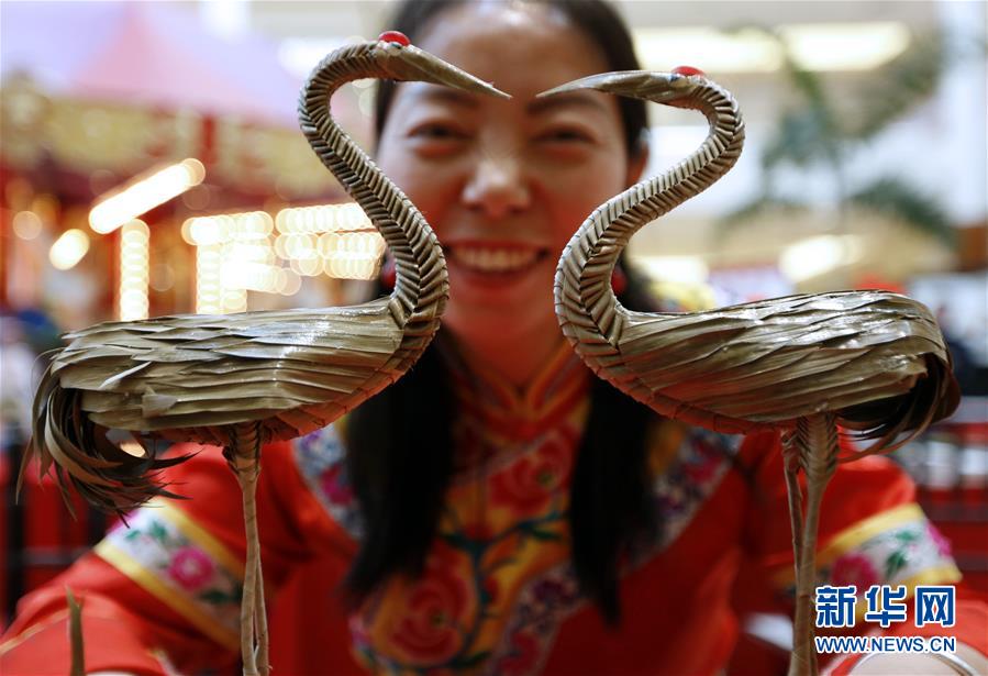 5月17日,在美国加州南岸广场,中国羌族民间艺术家江福容展示自己编织的仙鹤。 2019年中国旅游文化周暨中美建交40周年纪念图片展开幕式17日晚在美国洛杉矶举行。中国驻洛杉矶总领事张平在致辞中呼吁加强中美文化和旅游等方面的人文交流,以此推进双边合作和相互理解。 新华社记者 李颖 摄