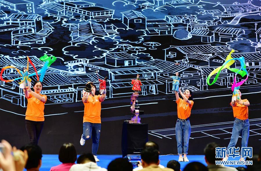 5月19日,演员在晋江市2019年文化旅游节开幕式上表演。 当日,以“文旅融合,品质晋江”为主题的福建省晋江市2019年文化旅游节开幕。 新华社记者 魏培全 摄