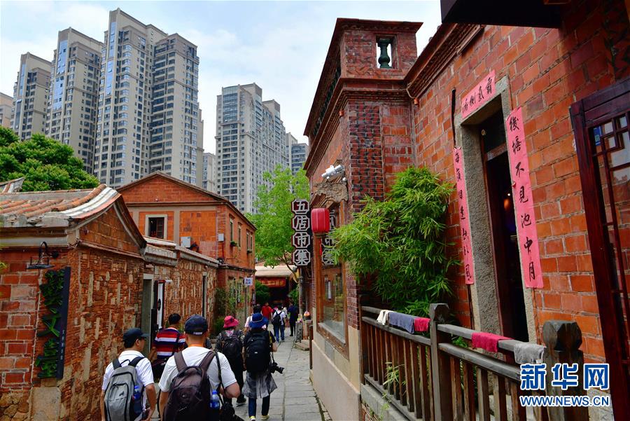 5月19日,游客在晋江五店市传统街区游览。 当日,以“文旅融合,品质晋江”为主题的福建省晋江市2019年文化旅游节开幕。 新华社记者 魏培全 摄