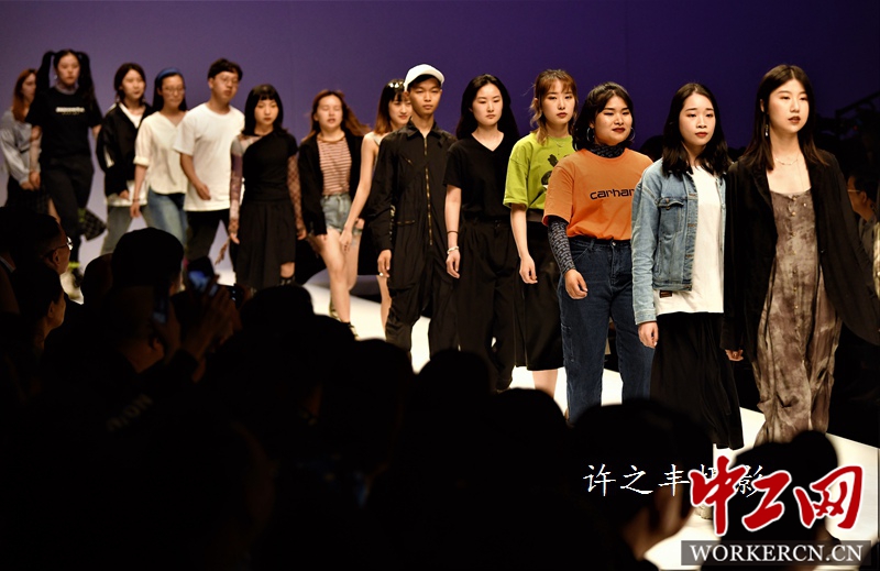5月19日晚,为期7天的尚坤塬·2019中国国际大学生时装周在“第24届中国时装设计新人奖评选”参赛作品之后降下帷幕。来自国内外40余所知名高等时装院校的千余名设计新秀以“梦想力+”为主题,伴随着青春活力,演绎自己的时尚作品。工人日报-中工网许之丰摄影报道