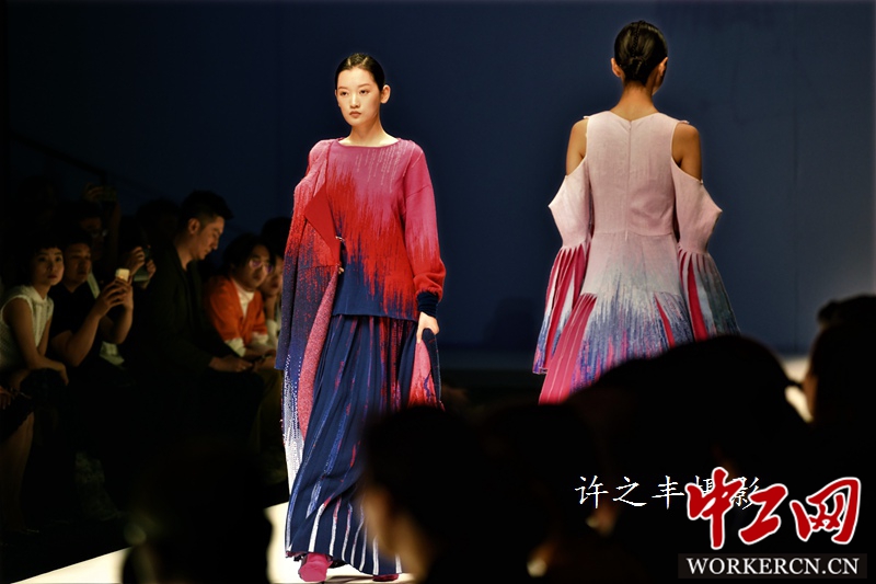 5月19日晚,为期7天的尚坤塬·2019中国国际大学生时装周在“第24届中国时装设计新人奖评选”参赛作品之后降下帷幕。来自国内外40余所知名高等时装院校的千余名设计新秀以“梦想力+”为主题,伴随着青春活力,演绎自己的时尚作品。工人日报-中工网许之丰摄影报道