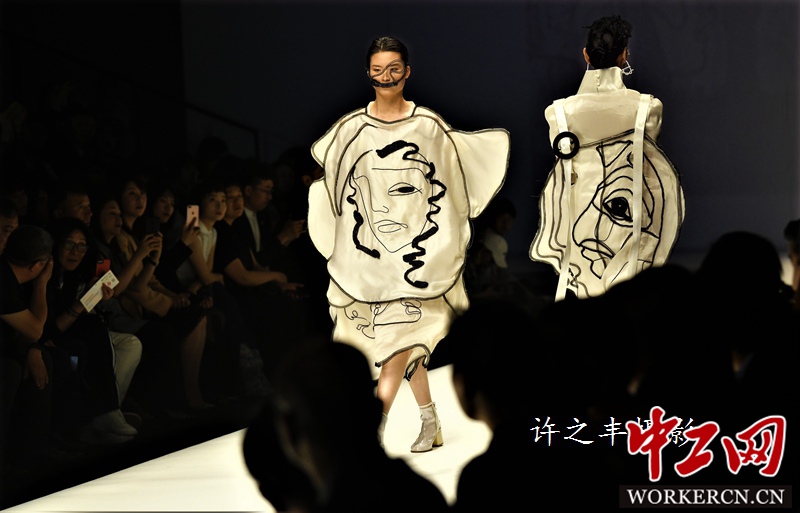 5月19日晚,为期7天的尚坤塬·2019中国国际大学生时装周在“第24届中国时装设计新人奖评选”参赛作品之后降下帷幕。来自国内外40余所知名高等时装院校的千余名设计新秀以“梦想力+”为主题,伴随着青春活力,演绎自己的时尚作品。工人日报-中工网许之丰摄影报道