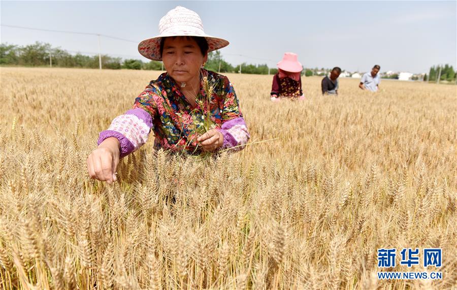 5月20日,安徽省巢湖市中垾镇建华村农民在麦田里劳作。 小满节气将至,农谚有“小满小满,麦粒渐满”之说。 新华社发(马丰成 摄)