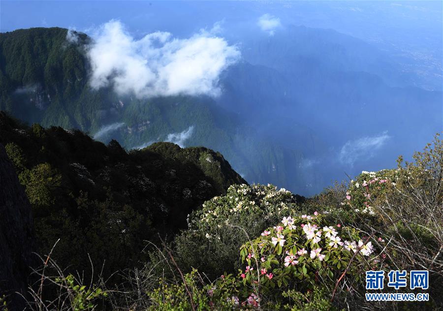 这是峨眉山盛开的杜鹃花(5月21日摄)。 夏季里,四川省峨眉山景色秀丽,满山遍野的杜鹃花成为一道亮丽的风景。 新华社记者 杨宗友 摄