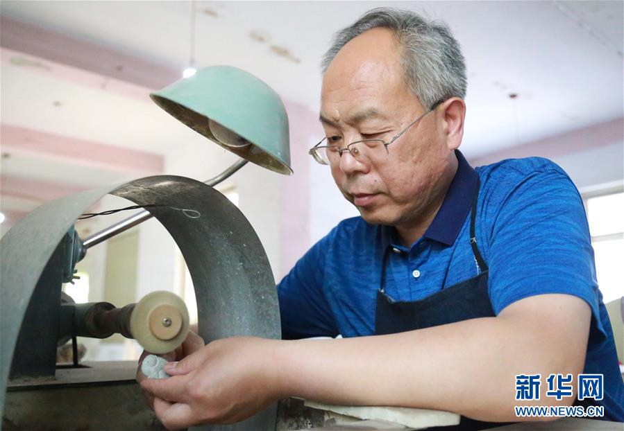 经过近30年的学习积淀,李永增对玉雕工艺有了更深的理解。 李永增说:“中国传统玉雕艺术,既需要传承,也需要加以扩展和创新。”由于技艺精湛,李永增在各类工艺品雕刻比赛中多次获奖。 新华社发(张驰 摄)