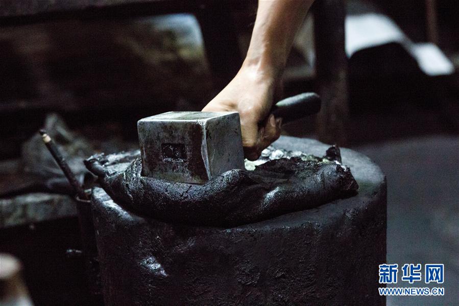 5月22日,在安徽省黄山市屯溪胡开文墨厂,工人捶打墨块。 徽墨因产于古徽州府而得名,徽墨制作技艺被列入第一批国家级非物质文化遗产名录。胡开文墨是徽墨的杰出代表,200多年来,胡开文墨一直遵循点烟、和料、杵捣、制墨、晾墨等11道古法制墨工序,恪守传统配料和工艺,生产出来的胡开文墨“丰肌腻理、光泽如漆”。 新华社发(吴孙民 摄)