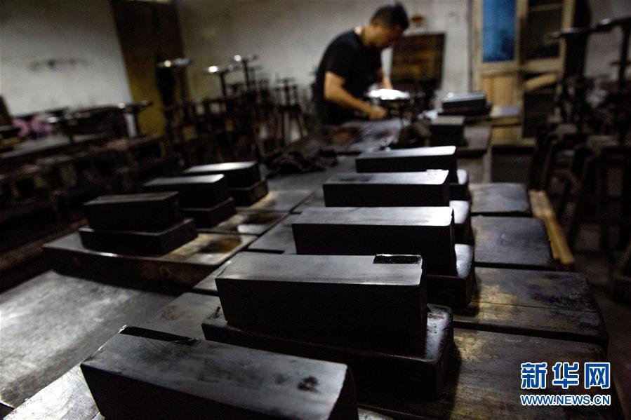 5月22日,在安徽省黄山市屯溪胡开文墨厂,工人在制墨。 徽墨因产于古徽州府而得名,徽墨制作技艺被列入第一批国家级非物质文化遗产名录。胡开文墨是徽墨的杰出代表,200多年来,胡开文墨一直遵循点烟、和料、杵捣、制墨、晾墨等11道古法制墨工序,恪守传统配料和工艺,生产出来的胡开文墨“丰肌腻理、光泽如漆”。 新华社发(吴孙民 摄)