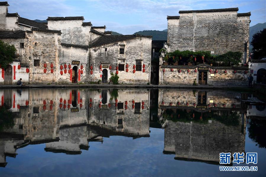 这是安徽黟县宏村风景区内的古民居(5月22日摄)。初夏时节,安徽省黟县宏村风景区的徽派建筑在晨光中如同画卷一般,美不胜收。新华社记者刘军喜摄