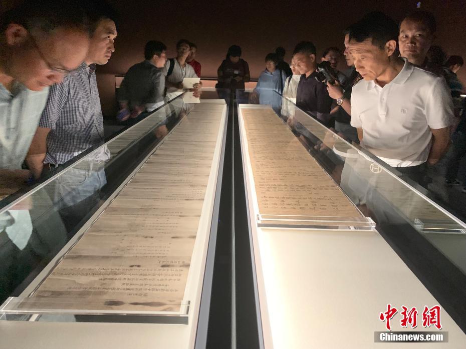 5月24日,“南宋徐谓礼文书”在浙江省武义县博物馆首次公开展出。这是目前中国国内出土的最为系统完整的宋代“官员档案”,共有17长卷,完整地展现了南宋一个普通官员从低层到中层的仕宦履历,更展示了南宋时期的官僚制度、政务运作和社会风情。奚金燕 摄