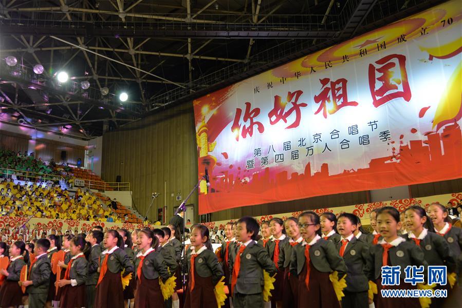 5月24日,小朋友在开幕式现场进行歌唱表演。 当日,第八届北京合唱节暨第四届万人合唱季在北京大学生体育馆开幕,100支合唱团近5000名合唱爱好者满怀激情唱响时代新声。 新华社发(徐钦 摄)