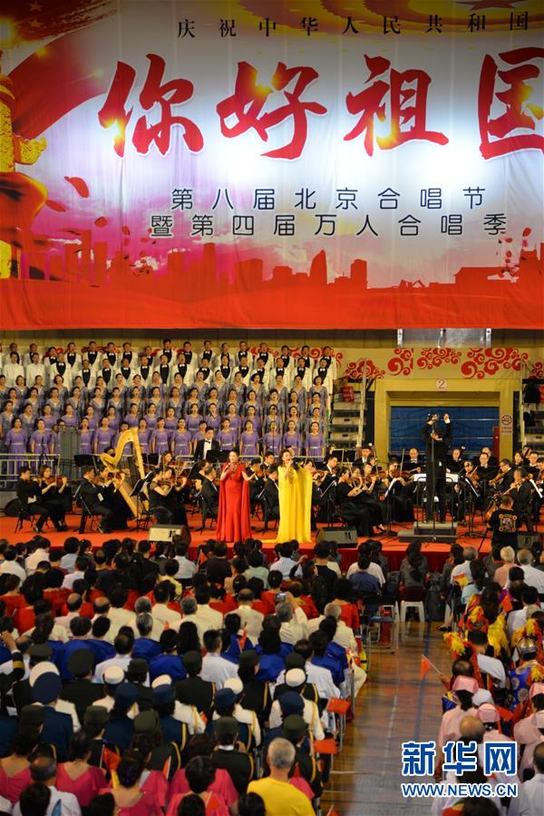 5月24日,歌唱演员在开幕式现场表演。 当日,第八届北京合唱节暨第四届万人合唱季在北京大学生体育馆开幕,100支合唱团近5000名合唱爱好者满怀激情唱响时代新声。 新华社发(徐钦 摄)