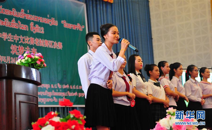 5月24日,一名老挝学生在比赛中进行自我介绍。 当日,第12届“汉语桥”世界中学生中文比赛老挝赛区比赛在老挝北部琅南塔省寮龚华文学校举行。 16名参赛选手分别来自寮龚华文学校、寮都公学、万象中学和中老友谊学校等8所开设中文课程的老挝学校。选手们围绕“携手汉语 筑梦未来”这一主题进行演讲、知识问答、才艺表演等环节的角逐。最终,来自寮都公学的程圣娇获得第一名。 新华社发(杜大鹏摄)