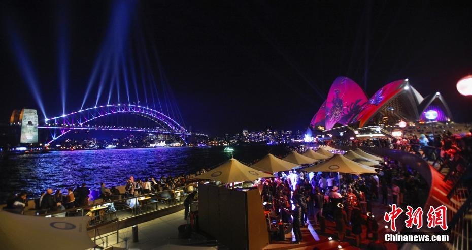 5月24日,缤纷悉尼灯光音乐节(Vivid Sydney)揭幕。这是南半球规模最为庞大的音乐、灯光、概念性艺术节,活动将持续到6月15日。图为悉尼海港大桥与歌剧院交相辉映。中新社发 姜长庚 摄