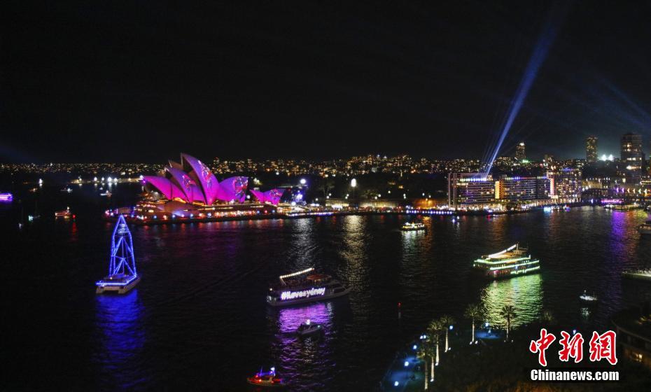 5月24日,缤纷悉尼灯光音乐节(Vivid Sydney)揭幕。这是南半球规模最为庞大的音乐、灯光、概念性艺术节,活动将持续到6月15日。图为悉尼歌剧院。中新社发 姜长庚 摄