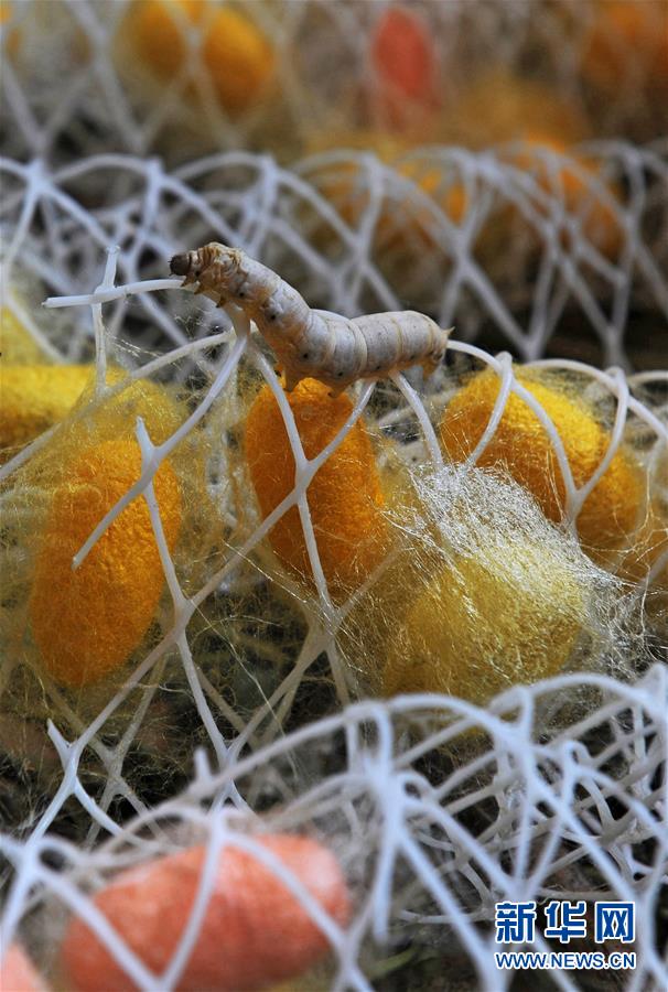 在湖州市南浔区辑里湖丝博物馆蚕房,一条即将吐丝结茧的熟蚕在爬行(5月22日摄)。 近日,在浙江省湖州市南浔区辑里村,由蚕农王一士创办的民间博物馆——辑里湖丝博物馆向公众免费开放。辑里湖丝博物馆收藏了王一士30多年来收集的与辑里湖丝有关的物品和农具,集生产、观赏、体验于一体,观众在了解当地丝绸文化的同时,还可实地体验江南农俗。 新华社记者 谭进 摄