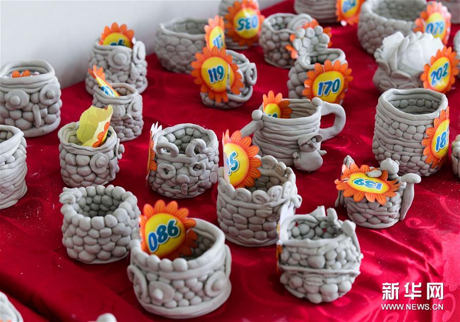 这是孩子们制作的陶艺作品(5月25日摄)。 新华社记者 徐昱 摄