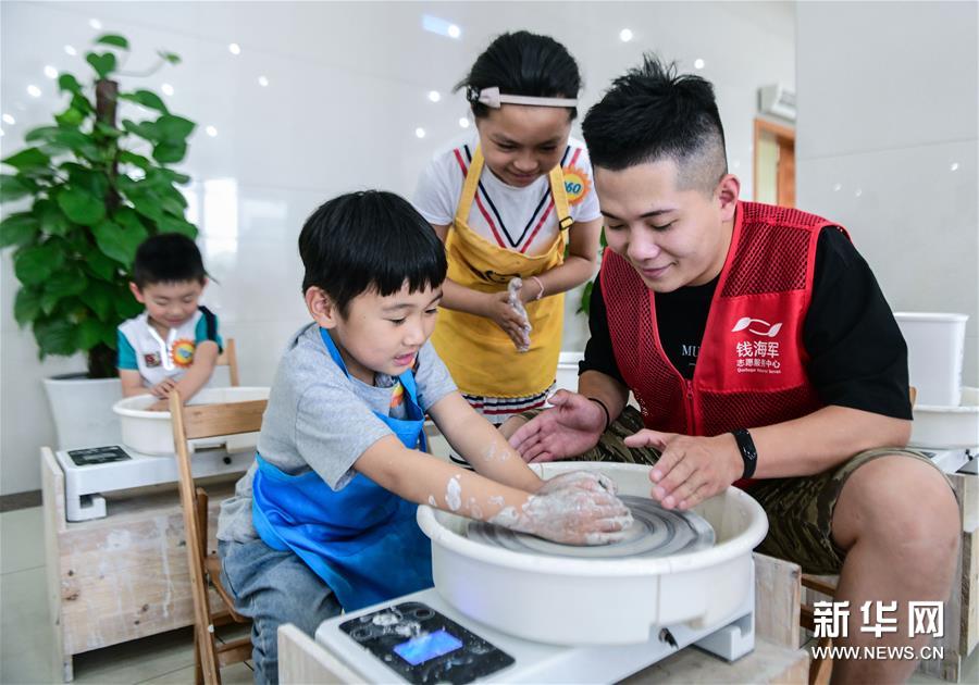 临近“六一”国际儿童节,浙江省慈溪市钱海军志愿服务中心的青年志愿者为当地小学生开设了“星星点灯陶艺大课堂”。活动让孩子们在制作陶艺的过程中培养感知力、观察力和创造力,同时也让孩子们从小了解当地的非物质文化遗产——越窑青瓷技艺,实现非遗文化的代代传承。 新华社记者 徐昱 摄