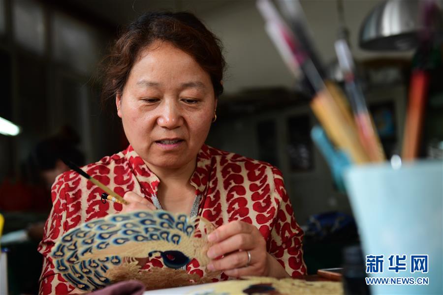 华州影子坊皮影制作工人在为皮影上色(5月23日摄)。 被称为“中国皮影艺术之乡”的陕西省渭南市华州区,近年来通过“盘活”皮影、竹编等传统文化资源,让非物质文化遗产主动“拥抱”市场,在推进传统文化传承创新的同时拉动当地就业,带动百姓致富。 新华社记者 李一博 摄