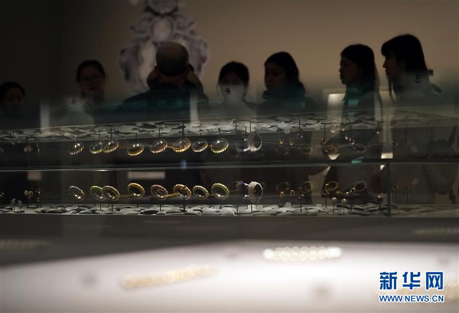 5月30日,人们参观展出的手镯与耳环。 当日,由中国国家博物馆和美国弗吉尼亚美术馆共同主办的“云鬓珠翠——弗吉尼亚美术馆藏二十世纪珍宝艺术展”在北京中国国家博物馆开幕,美国弗吉尼亚美术馆珍藏的123件20世纪珠宝艺术珍品和中国国家博物馆特意遴选的11件(套)馆藏文物与观众见面。 新华社记者 金良快 摄